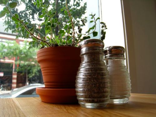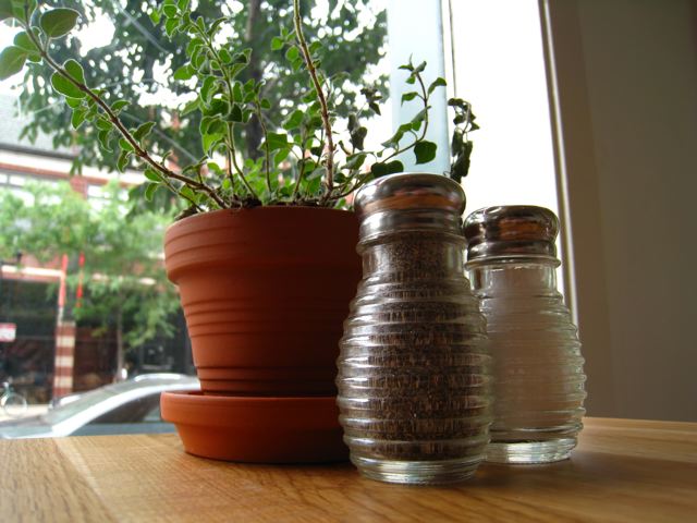 Salt and pepper shaker, sage plant. Cipollina, 1543 N. Damen Ave., 773.227.6300