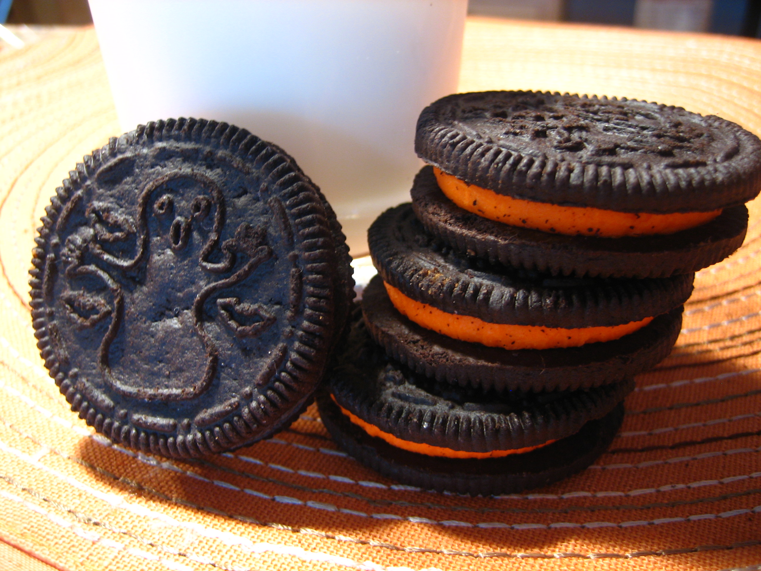 Is it too soon for Halloween Oreos? The fall chill in the air and my favorite holiday inspired me to pick up a box for the first time in years, only to discover that Oreo has actually come a long way from the Double Stuff and classic Halloween orange. There’s a slew of new fillings out there now like chocolate cream, peanut butter creme, mint chip creme, and reduced fat. I’ve also heard rumblings of a strawberry milkshake Oreo, but have yet to see them on the shelves, anyone know of any other new flavors?