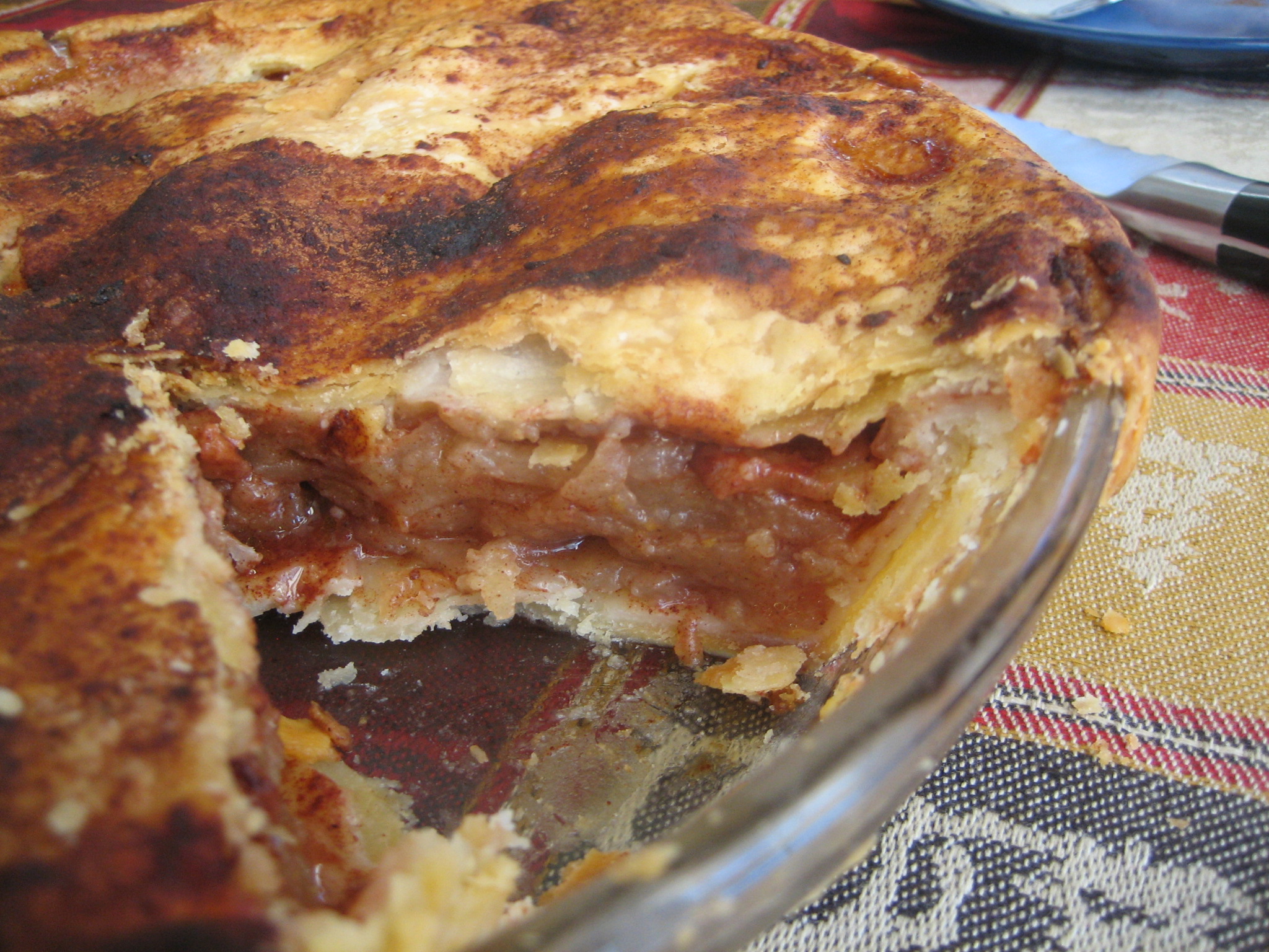 You may think that elizabites is all about stuffing your face, but from time to time, it’s about cooking or baking something, and then stuffing your face. On the tails of revealing my family’s sugar-coated eating habits in my last post, I wanted to take this opportunity to demonstrate how they are capable of using sugar in much more productive ways. Every Thanksgiving my dad whips up the most amazing apple pies (almost) from scratch, and I felt it was time to reveal the surprisingly simple recipe. He’s partial to store bought pie crusts, but feel free to use your own crust recipe. Just add a glass pie pan, Jonathan or Granny Smith apples (a tart variety is key), lemon, butter, cinnamon, sugar. Amounts, method and photos below.
