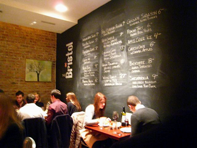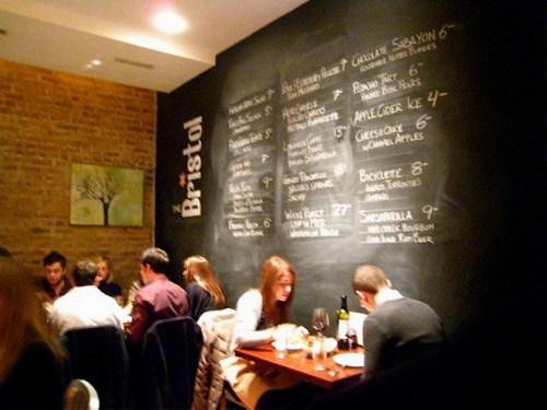 For the larger plates, we loved the sound of roasted half chicken (with its talon, our server described) with stone fruit panzanella, but ordered delicious steamed mussels in orange, guaciale and white ale (good, but they’re no Hopleaf) and the Raviolo, one large fresh ravioli stuffed with melt-in-your-mouth ricotta and egg yolk with brown butter, it’s a large portion, but not overly decadent and I could’ve scarfed down two a little too easily. We were intrigued by the chalkboard menu of daily specials like grilled pork belly with Brussels sprouts and salsify and the roast fall squash with cranberry. We turned to dessert instead and tried cheesecake with gooey and delicious caramel apple sauce and that crumbly sweet graham cracker crust that definitely isn’t made from those perforated graham crackers we were forced to eat at snack time. And through it all, our steadfast server kept our glasses full of crisp Riesling and spoke loudly when the place got too noisy (as it tends to). We were too full to go into some of the other interesting items on the very unique menu from an ELT (eel, heirlooom tomato with spicy aïoli) to chicken wings stuffed with chorizo (weakness) and blue cheese and a pistachio tart with poached Bosc pears, but I’ll be back to the Bristol as the seasonal specials (and the bathroom doors) change. 2152 N. Damen Ave., 773.862.5555. photos: Toki Collection.
