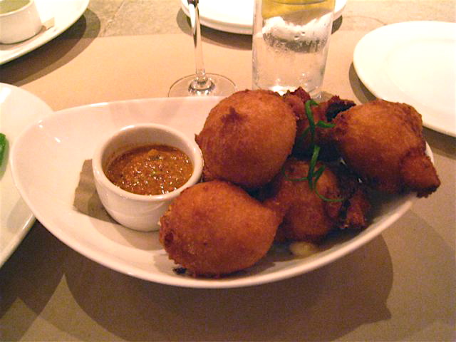 For other snacks, I wanted the duck fat fries, I really did. But held back in eager anticipation of an impending trip to Hot Doug’s (watch for this post), and got my fry on with smokey fritters and scallion mustard sauce instead. Savory doughnut holes of sorts, these are fried hush puppies with a sweet and slightly crunchy outside but soft, almost cake-like inside with a savory mustard sauce on the side.