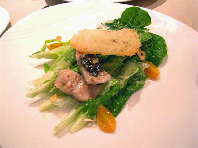 As I mentioned in a previous post, restaurants with bar hooks score major points in my book. But hooks are just the beginning of everything I loved about The Bristol in Bucktown. The formerly weird ll Covo space has been completely transformed and brightened up with long wooden communal dining tables and a menu of pub/gastropub/lots of fried-but-delish stuff. The word is out and the place is going off most nights, so when we checked it out on a Thursday, we were sent to the bar for immediate seating (hence the hook discovery). Our server was still attentive and patient with us as we perused the menus both on paper and written on the back “chalkboard” wall. Chalkboard menus (like the ones also at Chalkboard in Lincoln Square and Bucktown’s Mado) are an eco-friendly trend I’m seeing a lot of and am definitely into. At The Bristol, the entire back wall, we learned, is a floor-to-ceiling, curved chalkboard, as are the signs affixed to the men’s and women’s bathroom doors which feature a different famous couple nightly (we had Yoko and John). Anyway, the food. So chef Chris Pandel’s menu offers snacks, salads, fish, meat and a section called ETC..there is a lot to choose from not including the chalkboard specials which are seasonal and change out daily. It’s all conducive to sharing (hence the communal dining), even the Caesar salad with Romaine, grilled mackerel and one large crispy crouton.
