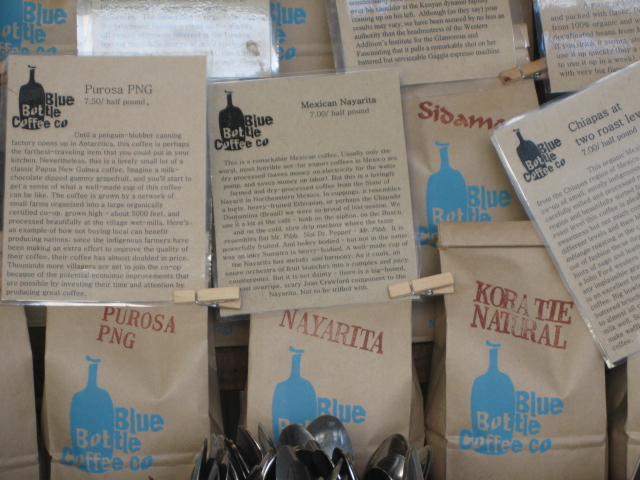 Besides eating my way through a new city, I also love to get the buzz on the local coffee. An insider friend and I kept the caffeine coming by hitting up two dueling San Fran coffee roasters, Ritual Roasters and Bluebottle Coffee Company in the same day. It was hard to pick a definite winner, but both offered up a hearty and robust cup of joe, and rich, creamy espresso drinks that didn’t need an ounce of sugar or milk added. Bluebottle scored points for their cool (but always crowded) hidden kiosk that looks like a nondescript garage, while Ritual has a great cafe space, a perfectly frothed cappuccino and “loyalist” coffee cards. Both had nice logos and serve up their drinks with fun espresso patterns in the foam.