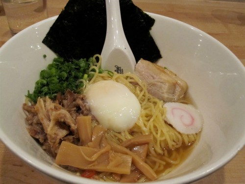 I mean, really. Did you think I would just casually drop Momofuku Ssäm in a previous post and not proceed to put up more mouth-watering shots from the meal? Out of three days in NYC, I managed to hit up 3 of the 4 Momo eating empires, including Ssäm and Noodle Bar (I’ll save Ko for another time if I’m lucky). We actually ended up at Ssäm first, thinking it was Noodle Bar, “a common mistake,” our server told us as we squeezed our way up to the packed communal dining table. Common, yet delicious as we proceeded to start with the heavenly creation that is the steamed pork buns. The soft spongy buns serve as the perfect grip for a generous, juicy chunk of pork belly, slather of tangy hoisin sauce, squirt of fiery hot sauce, crispy cucumbers and scallions. It’s chef David Chang’s signature dish, and so totally amazing, I knew I had a new craving on my hands; one that would continue to hit me throughout the impending Chicago winter. But we still had to focus at Ssäm, as there was melt-in-your-mouth cured hamachi with horseradish and edamame purée to try (divine), sides like fried brussels sprouts with fish sauce vinaigrette, mint and crispy puffed rice, and grilled branzini, a flavorful firm white fish entrée served with delicious smoked eel, zucchini and a marjoram pistou.