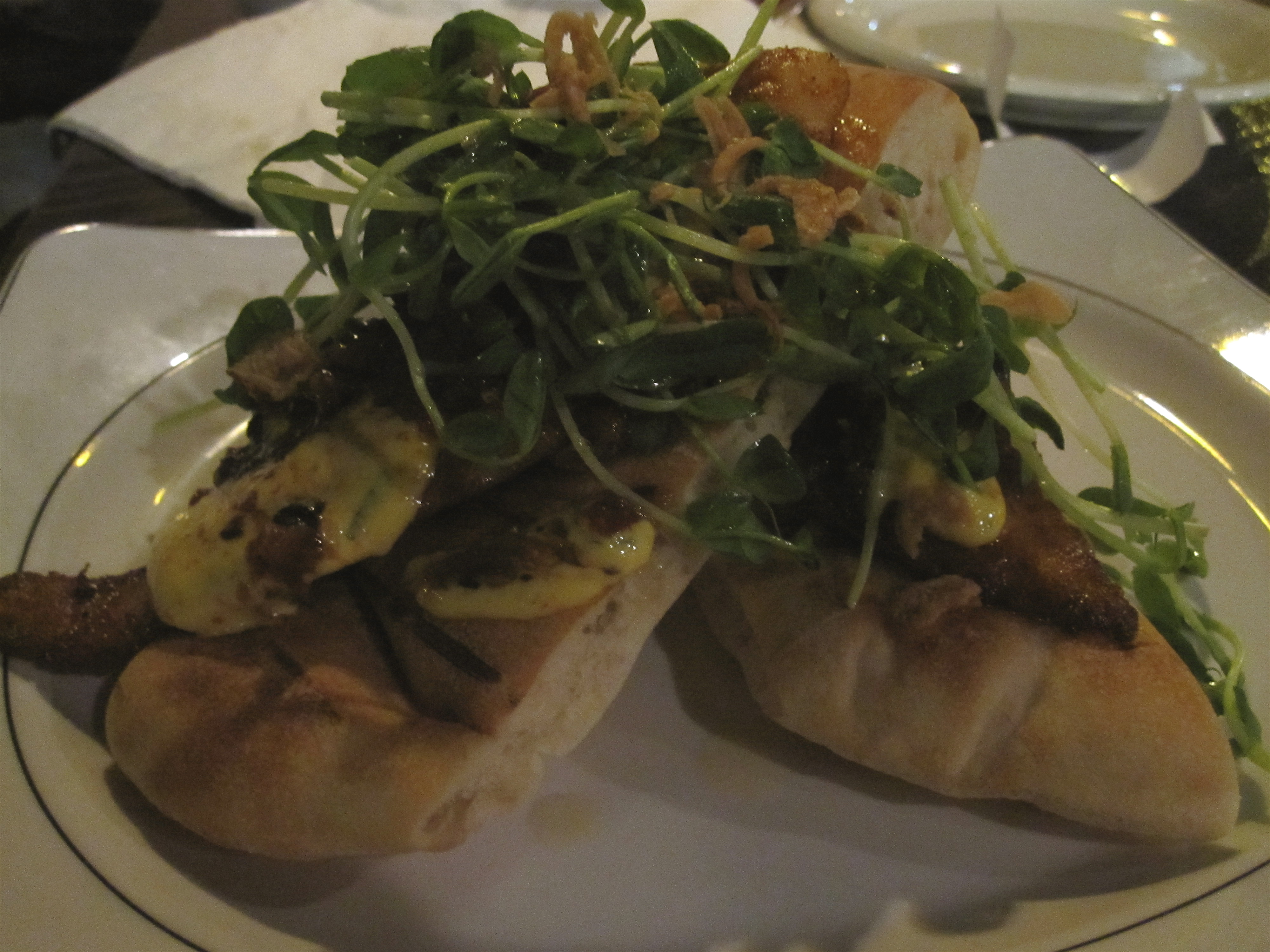 I saw blackened tilapia and curry tartar sauce and had to have this open-faced sandwich that comes on soft chewy bread from a local Iraqi bakery. The sweet caramel-glazed fish portion could’ve been larger to match up to the size of hearty bread, but the combo still worked, with a mess of watercress and spicy curry sauce on top.