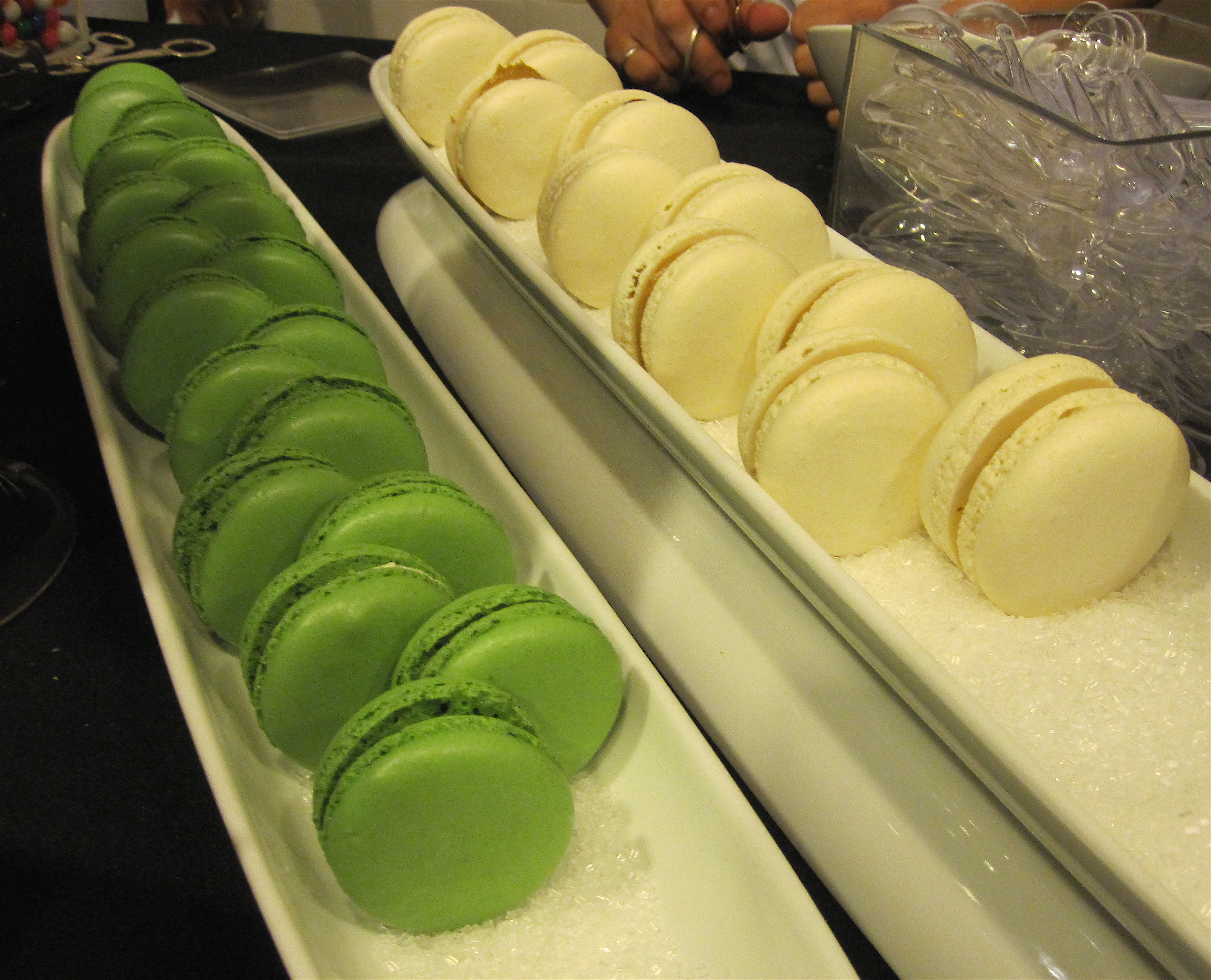 I still love cupcakes. I really do. Red velvet ones, mostly (see category). But lately I have seeing and indulging in another classic sweet showing up where the cupcakes of the last few years left off, macaroons. A French Pastry school event a few weeks ago had The Peninsula showing of their chocolate bar favorites, like flavored marshmallows (coffee, chocolate), fizzy raspberry suckers (made with baking soda for the fizz!), and a slew of colorful French macaroons in flavors like peanut butter and jelly, lemon and lime. I also discovered the deliciousness that is passionfruit and chocolate macaroons from Bittersweet Bakery, and am on the hunt for more. A red velvet perhaps? Suggestions welcome in the comments!
