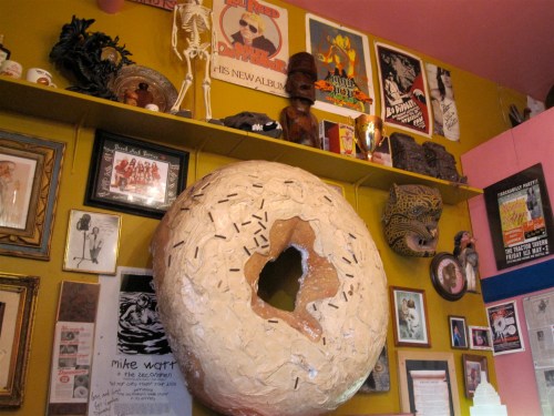 The wait was long and rainy, but moved fast. Voodoo visitors poured out bearing pink boxes of doughnuts they were already busting into as they brushed smugly back past the line, while some locals walked by in packs telling the line to go to the doughnut shop down the street (but failed to specify which one). But we weren’t going to give up now.. we pressed on and waited and finally got inside to make our decision while we took in the decor.