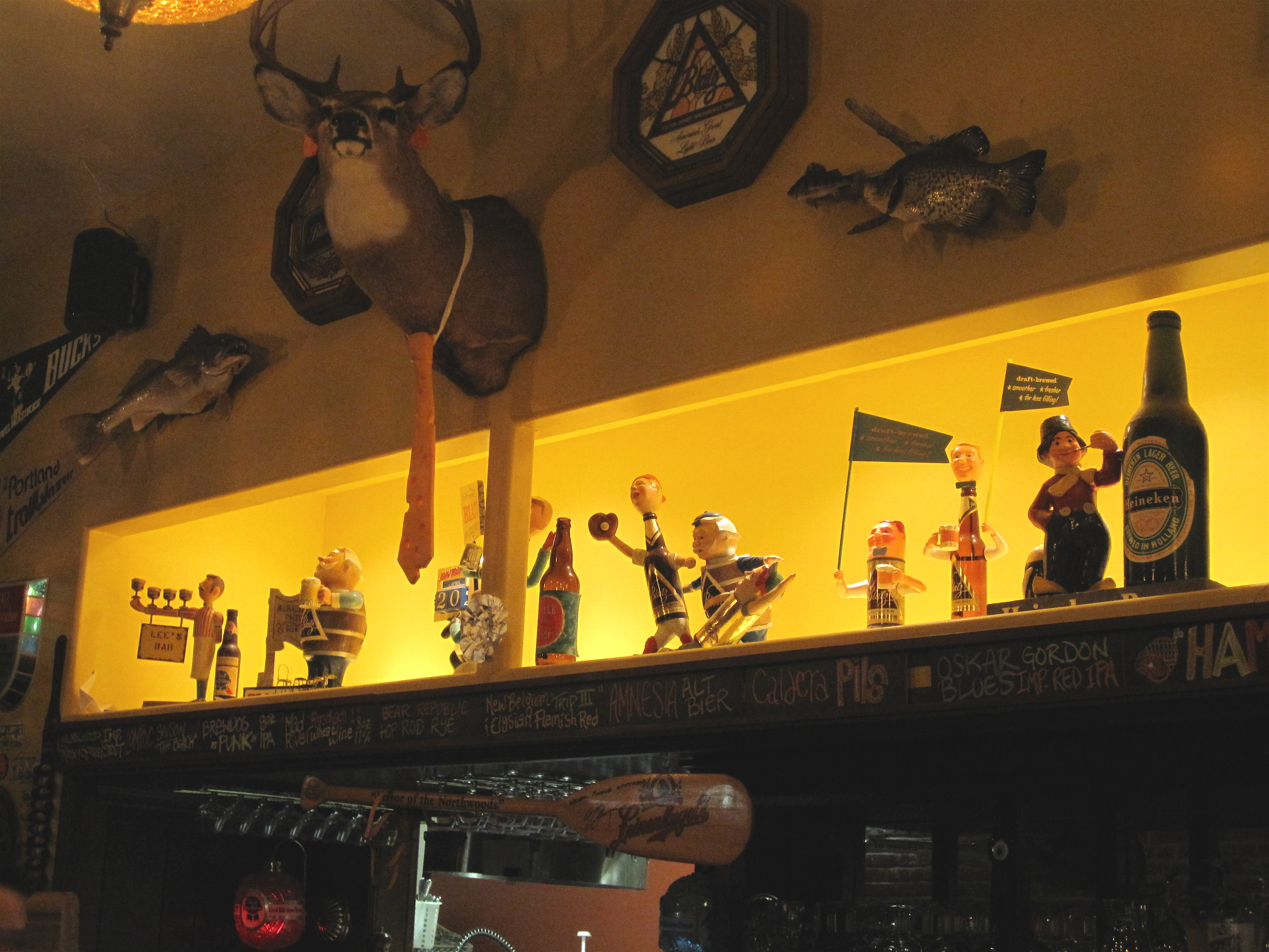 We were lucky enough to get a table one night at the popular Saraveza Bottle Shop and Pasty Tavern in Portland, a popular beer and pasty bar with the best collection of beer-centric kitsch I have ever seen in one place (second to Von Trier’s in Milwaukee). Awesome American craft brews and Belgian ales (200 bottles and 10 rotating tap selections), beer sign eye candy galore, weird toys, plastic magnetic letters affixed to the old-school coolers and bottle cap-infused table tops. What is not to love? 1004 N. Killingsworth St., Portland