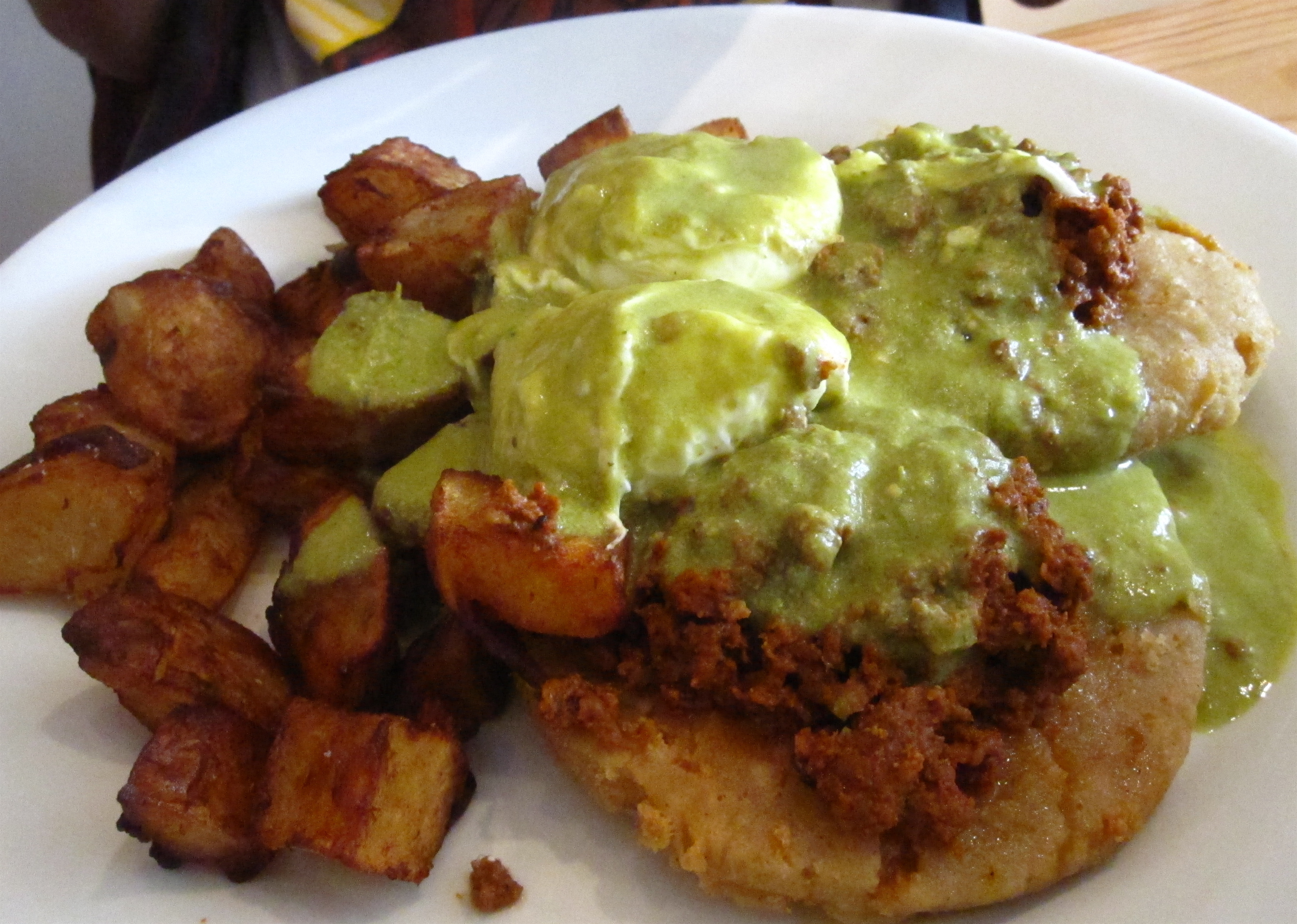 3). The Benedicts…especially the Nanadict served on a pupusa corn flatbread with homemade chorizo.