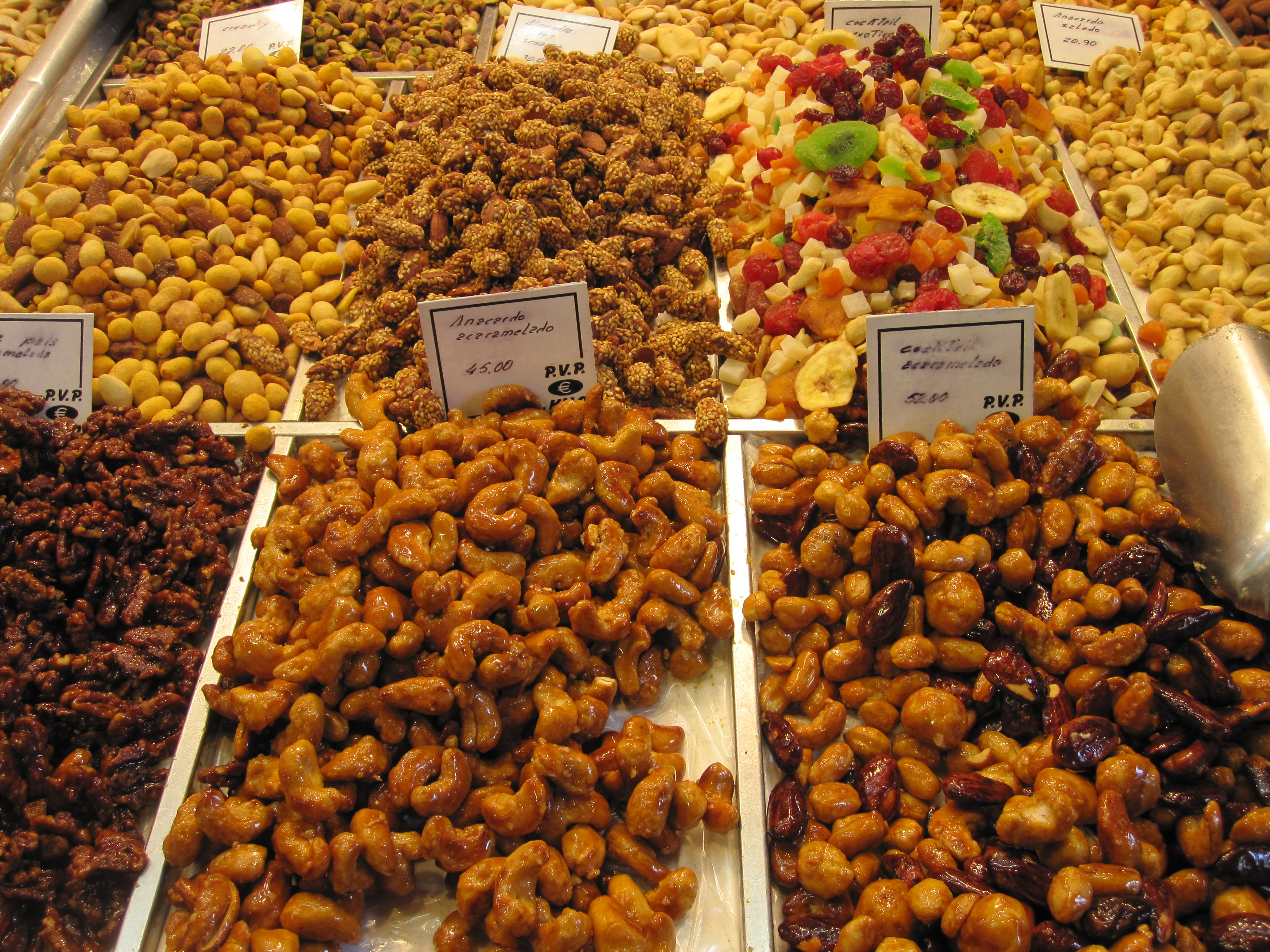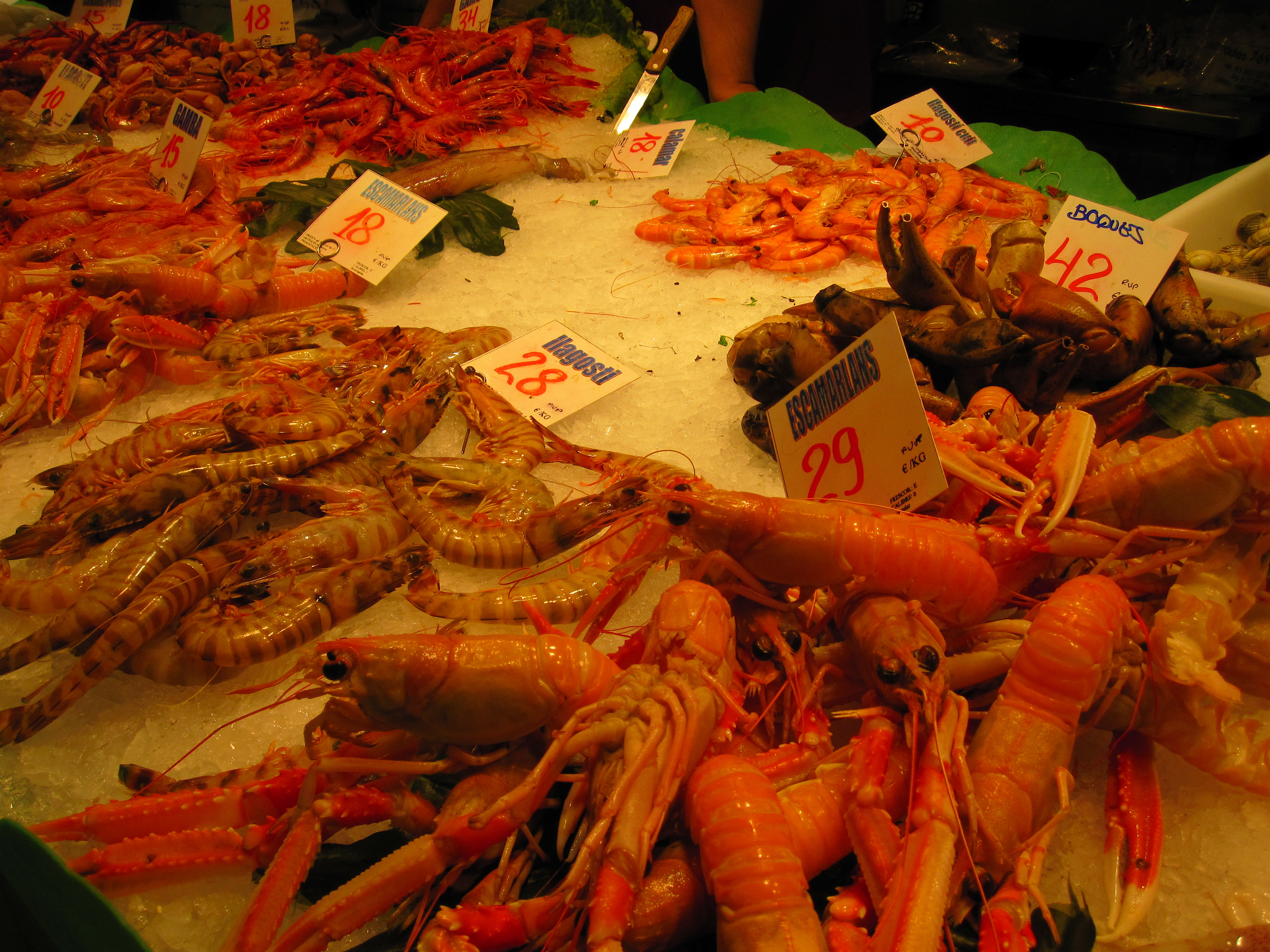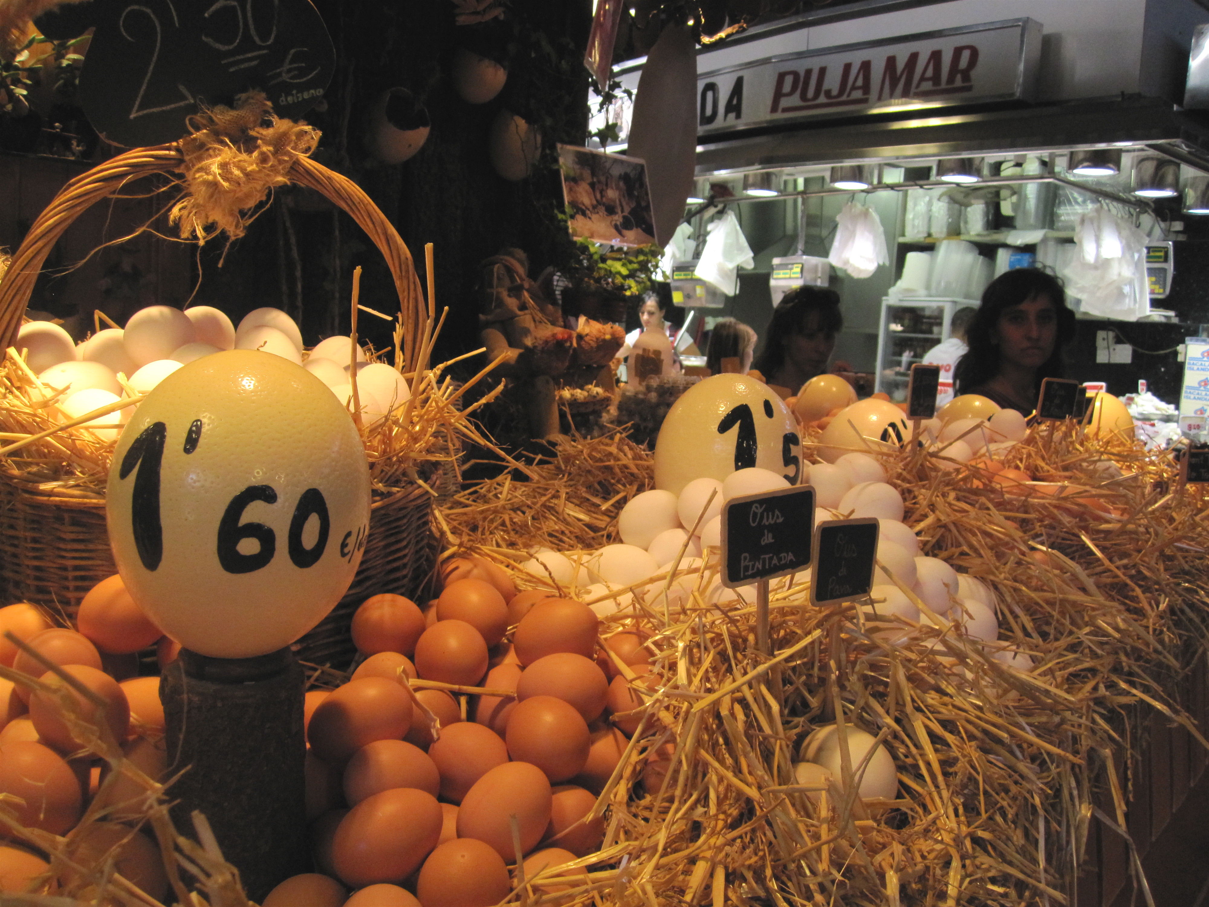 If the dorky u-shaped neck pillow I finally broke down and bought in the airport (I get it now!) didn’t help make the journey to Barcelona fly by, thoughts of the delicacies that awaited us sure did. But the truth is, I had a pretty good idea of what to expect for my first trip to Spain (jamon Iberico falling from the sky, amazing fresh and canned seafood, delicious red wine, chorizo, Manchego, sherry, cava..the list goes on), but truly didn’t understand the culinary feast we were in for. It’s hard to know exactly where to start, or how to break down our eating adventures which truly tested even my four-stomach limitations, so I’ll begin at the famous Boqueria food market. The market had been a must-see suggestion not only from all of our guide books, but anyone who’d ever been to Barcelona, including friends who professed tears of joy upon walking through the mouth-watering kiosks literally spilling over with colors, flavors, delicacies, to chef friends who offered up suggestions for the best tapas counters inside. Located just off the touristy La Rambla, the market was just as colorful, decadent, delicious and overwhelming as everyone had promised. The photos speak for themselves, but the vendors sold everything from salt cod fritters to fresh eggs. We went back several times, and did some tapas hopping around the cava-soaked counters (post to come), but here are a few pics of our visit on our first jet-lagged day. We were bleary-eyed..but still able to ogle.