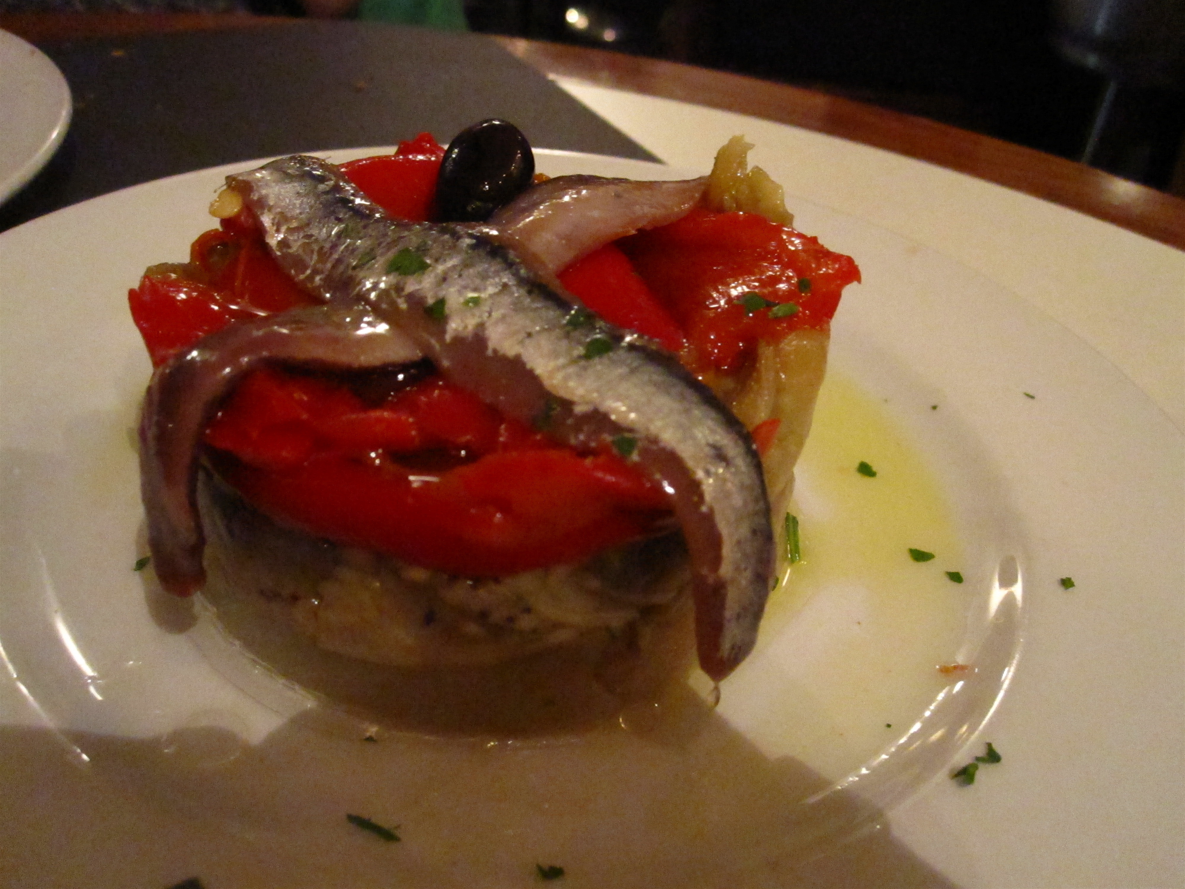 From there this eggplant dish with roasted red peppers and olive oil soaked sardines was almost to pretty to eat..
