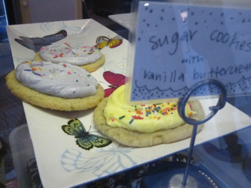 Oy! WHY do I go in here? Actually, more specifically, why do I drive 3 miles out of my way to go in here? OK, yeah, so it’s the sugar cookies with buttercream frosting I recently discovered at Sweet Mandy B’s. Chewy-soft sugar cookies fresh from the oven, smothered in a thick layer of smooth, sweet, pastel-hued vanilla buttercream frosting I need to figure out how to recreate, and sprinkles. This place is chock-full of cupcakes, cookies, lemon bars, cakes and the long lines to justify their greatness, and..maybe it’s the plate, but these just make me think of spring, and serious sugar high. Sweet Mandy B’s, 1208 W. Webster, 773.244.1174