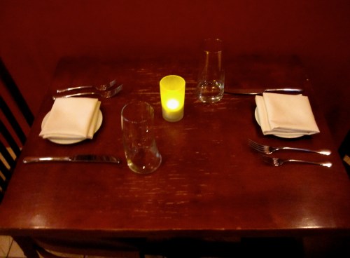 2 glasses, 4 forks, 2 knives, 2 napkins, 1 votive, 2 plates. Browntrout, 4111 N. Lincoln Ave.