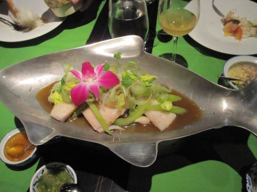 Our taste buds were still abuzz with flavor, so the next course was a mild, more streamlined fit, a sweet and tangy caramel sauce catfish with celery and coriander root presented beautifully family-style.