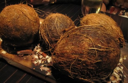 And this is what happened when we opened our pre-cracked shell. A cool, refreshing coconut sorbet somehow rested on one half, the other was filled with a coconut tapioca with corn, egg and licorice. I’m not the biggest coconut fan, but this dessert was salty, sweet, and I’ve officially decided that you can’t go wrong when corn meets dessert.