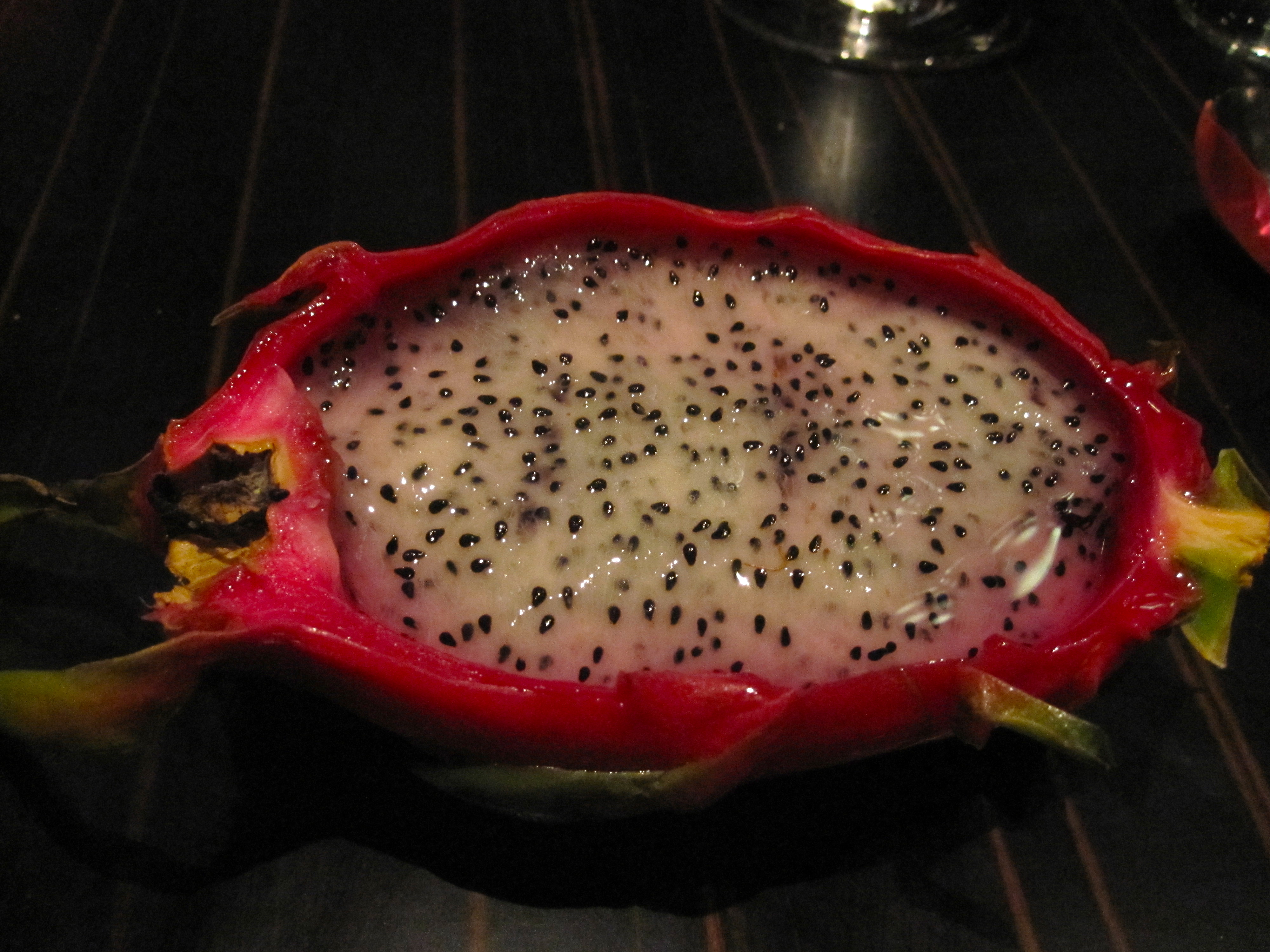 I wanted to LOVE the last dessert. I really did. I mean, they even delivered a fragrant pink rose to the table along with it. A halved hot pink dragonfruit was almost so lovely, we didn’t want to dig into the sweet black seed-dotted custard. And by sweet, I mean almost too perfume-y for me, but truly marvel-worthy.