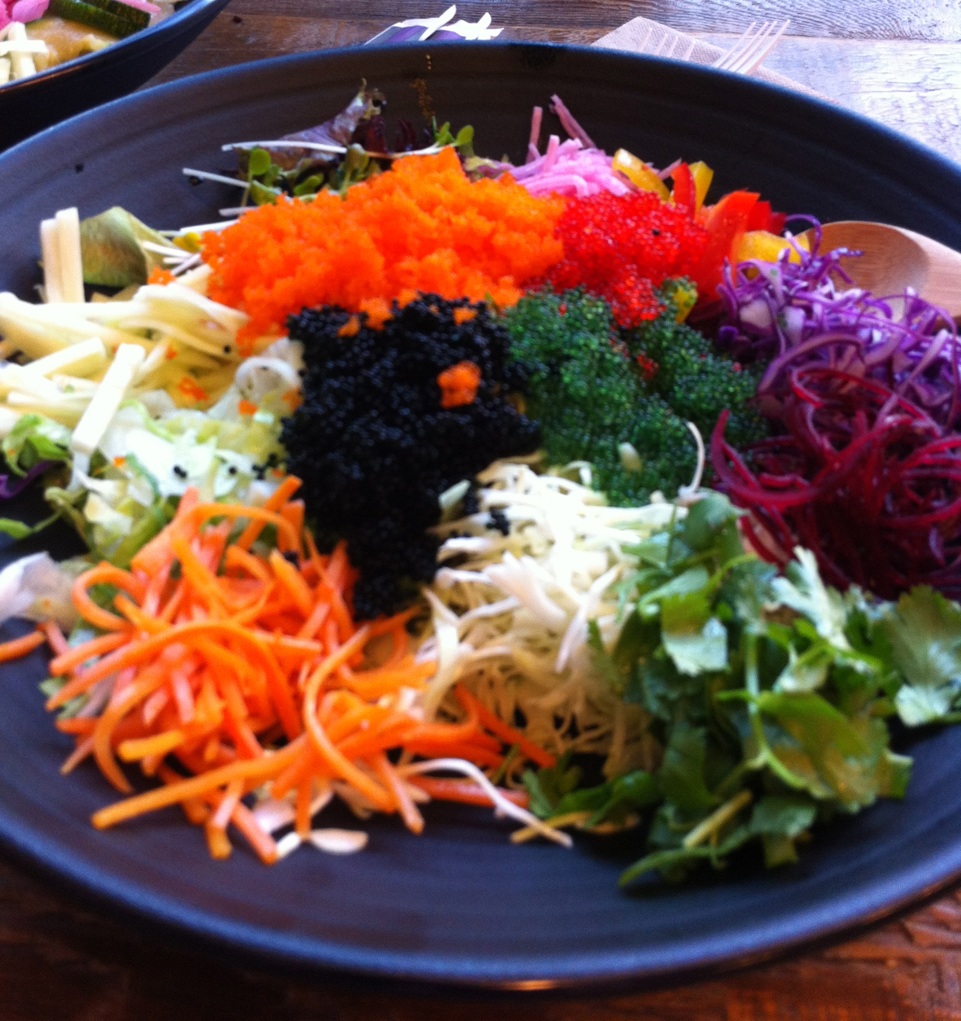 But first the bowls. Literally bursting with over a dozen vegetables (think romaine, cabbage, cilantro, carrots, peppers, and more) serve as the base, while rice, hard-boiled eggs small mountains of tobiko, and a choice of Korean BBQ or pork spiced up with Korean hot sauce are just a few options.